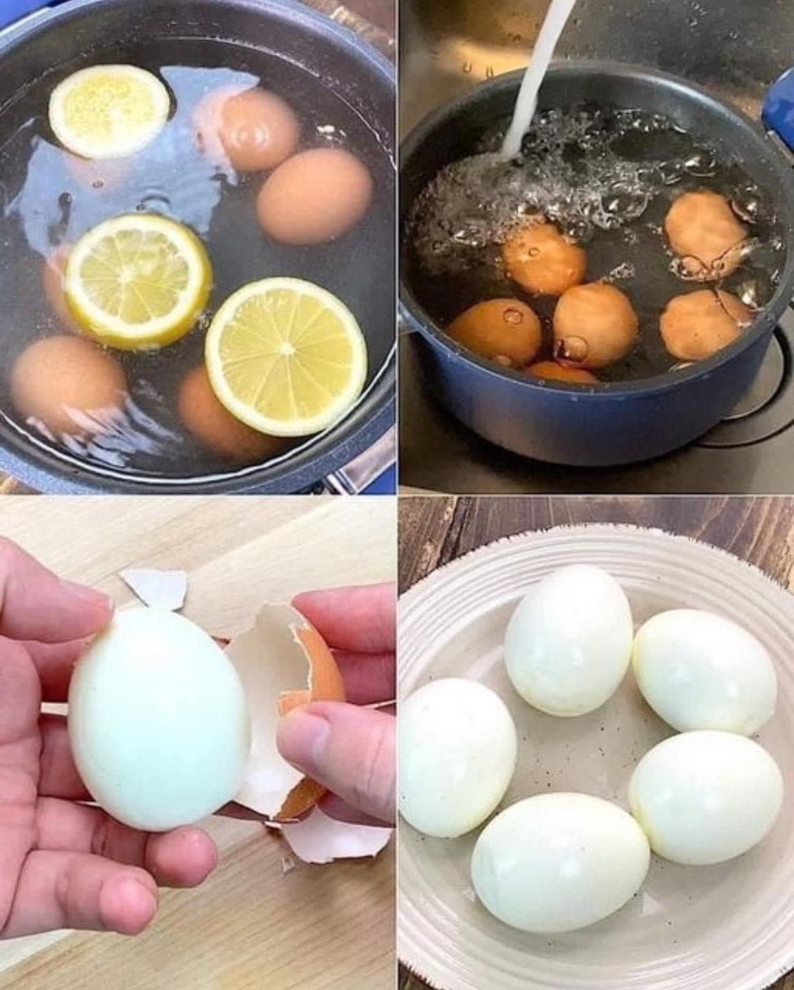 Si no puedes esperar el tiempo de enfriamiento, entonces te traigo otro tip que me recomendaron y funcionó. Para ello necesitarás un limón y córtalo en rodajas. Estos deberás ponerlos en la olla con agua hirviendo cuando ya hayas añadido los huevos. Con este truco la cáscara saldrá casi de una sola pieza, sin esfuerzo y sin ensuciarte las manos.