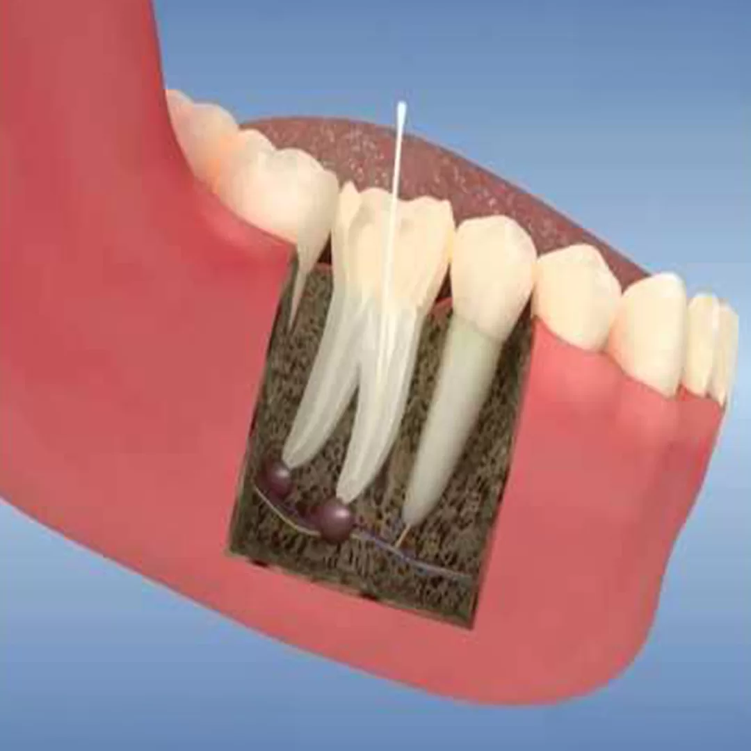 El especialista hace una pequeña abertura en la parte superior del diente para acceder al conducto donde está la pulpa. - Limpieza del conducto: